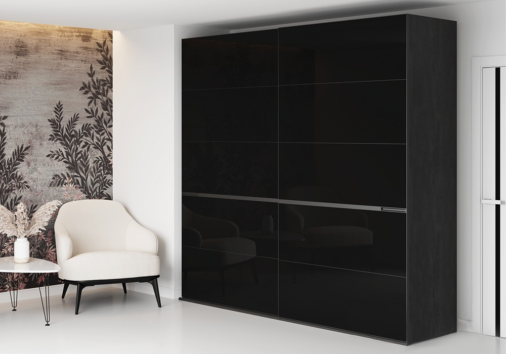 В шкафу присутствуют ниши для хранения одежды и обуви: Верхняя часть поделена на 2 отсека габаритом Д.1226 х В.375 х Г.554 мм. Нижняя часть шкафа состоит из 4 отсеков, два из которых расположены по центру и предназначены для расположения одежды на вешалках-плечиках. Габарит данных отсеков Д.795 х В.1940 х Г.554 мм. В левом отсеке 2 штанги металлические (расстояние до нижней штанги - 965 мм, от нижней до верхней – 848 мм), в правом – 1 штанга и полка несъемная (ниша под полкой Д.795 х В392 х Г.554 мм, расстояние от полки до штанги – 1427 мм). Два отсека, расположенные по правую и левую стороны от центральных, включают в себя по 2 ящика на направляющих скрытого монтажа, длиной 450 мм. Фасады ящиков (188х409 мм) имеют отфрезерованную выемку заменяющую ручку. Внутреннее пространство ящиков Д.375 х В.96 х Г.434 мм. Механизм выдвижения ящика: направляющие на 450 мм скрытого монтажа 3/4 (Cubo) 658-3045. Максимальная нагрузка на ящик: 35 кг равномерно-распределенной массы. Над ящиками расположены по 3 полки (размер ниш Д.415 х В.375 х Г.554 мм), под ящиками отсек габаритом Д.415 х В.392 х Г.554 мм. Профили системы Аристо Nova со скрытой установкой верхнего трека в корпусе, цвет черный матовый. К верхней вязке крепится верхняя направляющая длиной 2568 мм. На нижнюю крышу крепят нижнюю 2х-полозную направляющую, с установленным в пазы уплотнителем, длиной 2566 мм. Фасад шкафа-купе состоит из 2х створок, каждая из которых включает в себя 5 сегментов (верхних / нижних сегментов – 2 шт., средних сегментов – 3 шт.). Каждый сегмент собирают на производстве из 1250х675 Лакобель с защитной пленкой и Nova профиль рамы под стекло широкий (Д.1175), Nova профиль рамы под стекло узкий (Д.1175), Nova профиль рамы под стекло узкий (Д.460). Закрепляют на сегменте Nova рамку горизонтальную узкую, цвет черный матовый (Д.1246) в указанном месте. У шкафа-купе видимые боковины разной глубины, за выступающим вперед фасадом глубина боковины 621 мм, за утопленным фасадом бок 582 мм. При сборке можно выбирать какая дверь будет выступать вперед и ставить боковины соответствующим образом. Задняя стенка шкафа ЛХДФ белого цвета в паз, состоит из 10 частей. |